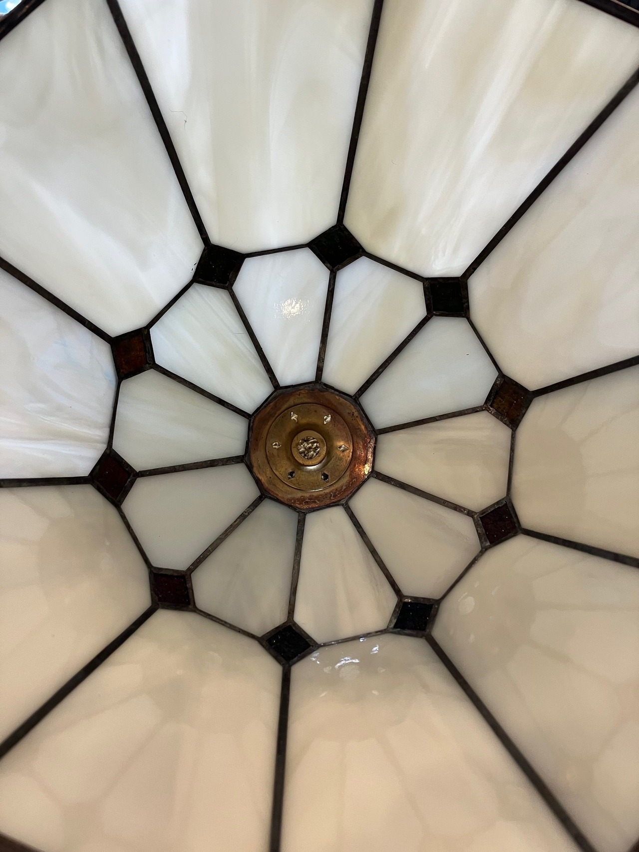 松本民芸家具のランプベースにオリジナルのステンドグラスでシェードを作りました。