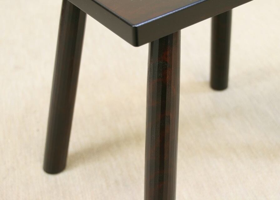 4本脚のシンプルなスツール。脚は角材をカンナで面取りし、天板にくさび止めしています。